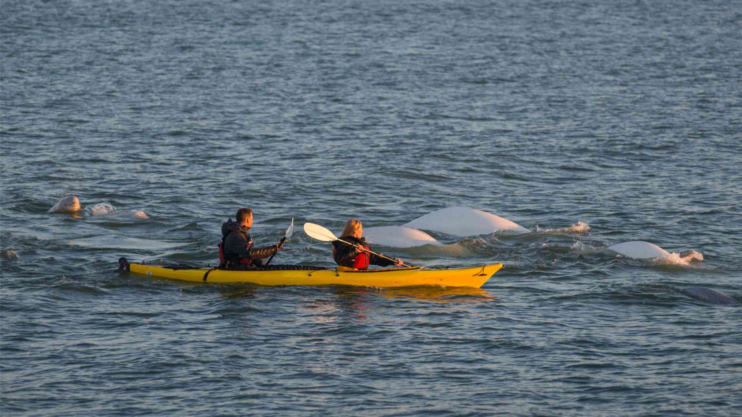 Embark on an unforgettable kayaking excursion along the gentle currents of the Churchill River, a journey that brings you breathtakingly close to the ethereal beluga whales as they glide through the waters. Come evening, immerse yourself in the rich tapestry of local life with a captivating presentation by an Indigenous Churchill resident, who will weave stories of the region's vibrant culture, storied history, and the untamed wildlife that defines this extraordinary corner of the world.