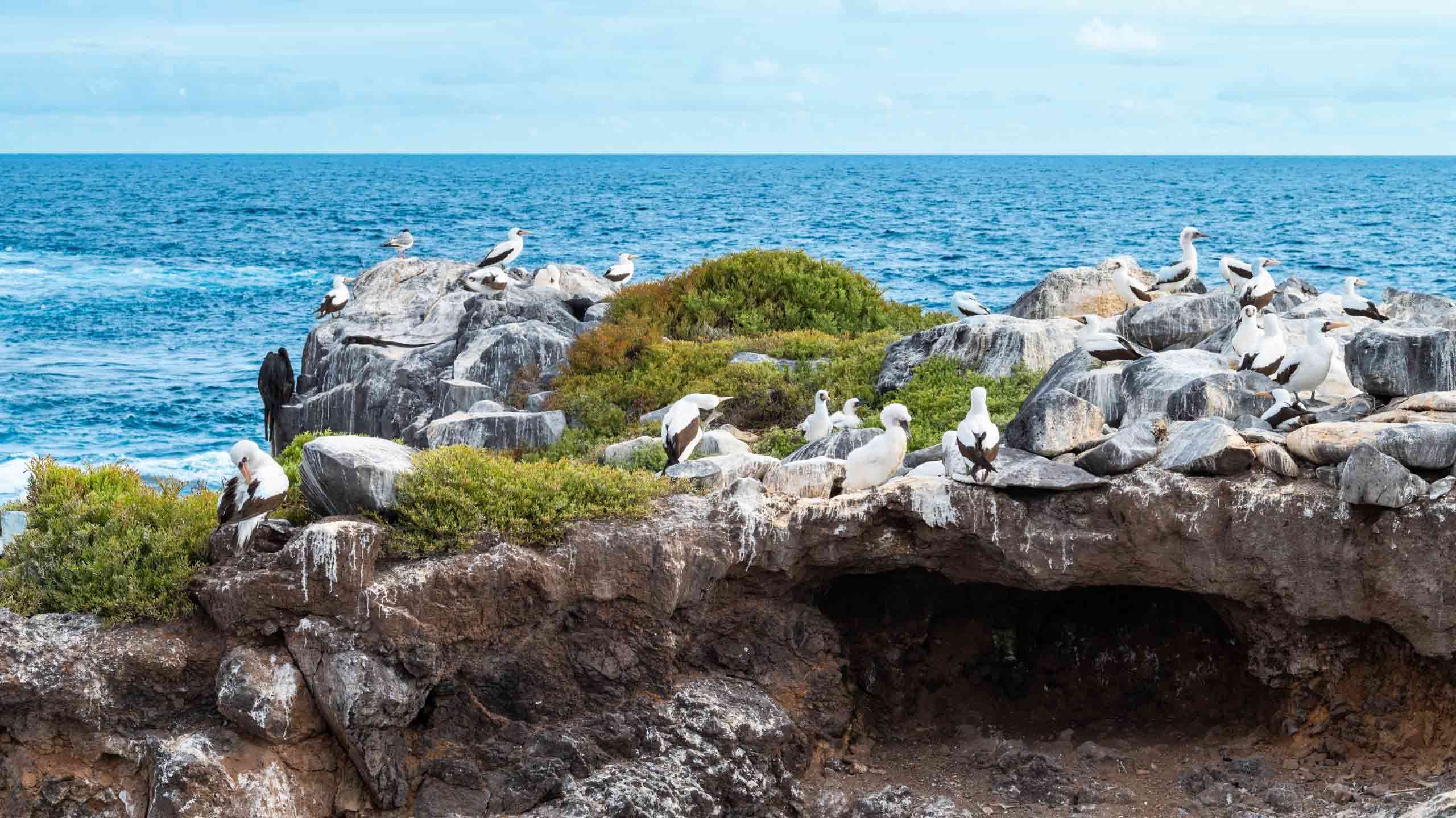 Wander deeper into this lively environment and discover a tapestry of seabird colonies, featuring striking Nazca and blue-footed boobies alongside graceful gulls and tropicbirds. The highlight of your adventure awaits as you encounter the magnificent waved albatross, the largest bird of Española, present from April to January. Prepare to be captivated by its majestic flight and intricate courtship display, a breathtaking finale to your nature-filled excursion.