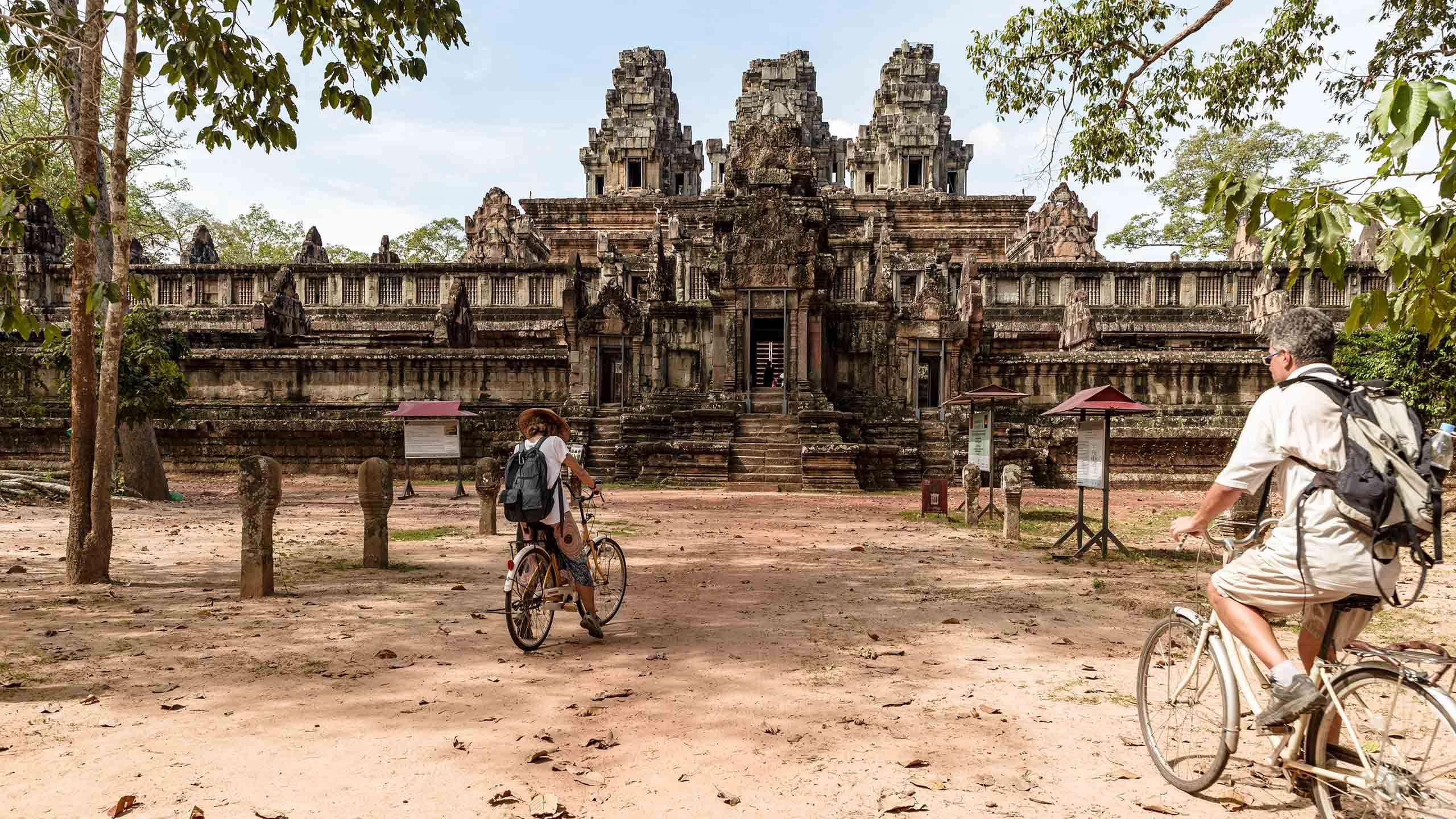 After exploring the temple in the quiet of early morning, we settle in for a relaxed picnic breakfast to replace lost energy. Then one final ride through Angkor Archaeological Park, the vast UNESCO World Heritage site that preserves the remains of the Khmer Empire’s capital across more than 400 square kilometres. Our route follows quiet trails and shaded paths between the temples, stopping at highlights such as Tah Prohm and the Terrace of the Elephants, and also traces a few lesser-known corners of Angkor that most visitors never see.