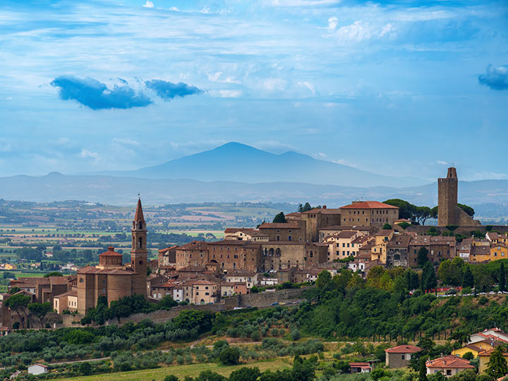 Today, our journey begins in the heart of Siena, taking us through the iconic rolling hills of Tuscany. As we leave the city behind, the landscape unfolds into a breathtaking panorama of vineyards and ancient olive groves. We will pedal along tranquil country roads, discovering the charm of quaint medieval villages that dot the countryside, each offering a glimpse into the region's rich history. One of our stops will be the fortified hamlet of Monteriggioni, where you can marvel at its perfectly preserved 13th-century walls.