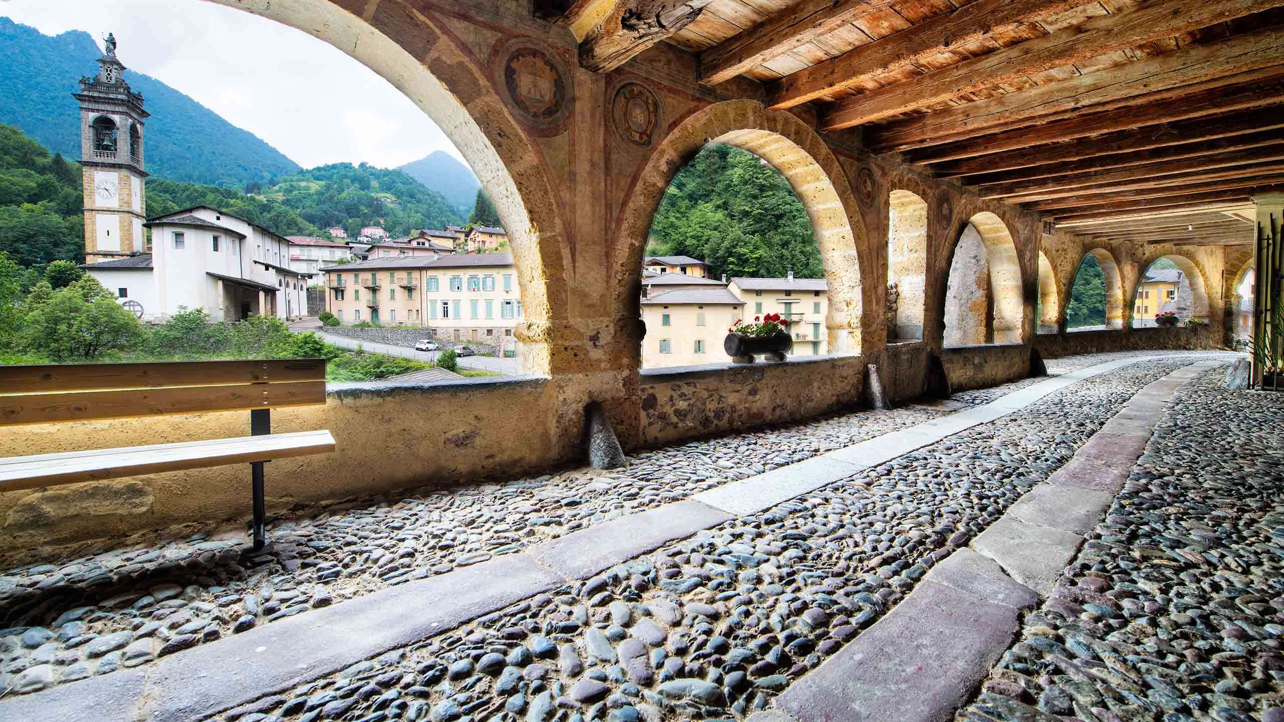 Today, we cycle north along the gentle, flat Val Camonica trail. This guest-favourite route runs beside the River Oglio, offering peaceful scenery and a remarkably smooth ride. We will make a stop in Boario Terme, a town renowned for its thermal baths, where we can enjoy a coffee and a light lunch with the majestic Alps rising in the distance.