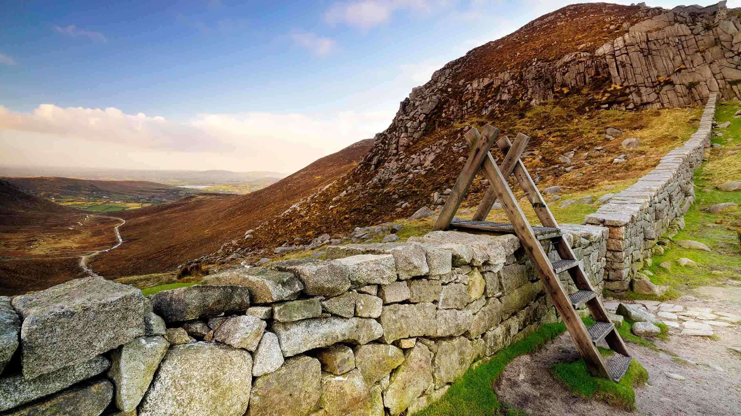 Navigate a grassy trail through fields to a small mountain tarn. The lake separates two ancient burial cairns, which are 5,000 years old. Their entrances were meticulously built to align with the sunset during the winter solstice. The passage tomb is the highest in Northern Ireland, and at the peak, it rewards you with stunning 360-degree views. If it’s a clear day, you can see Dublin Bay and Scotland, as well as Wicklow and the Mourne Mountains.