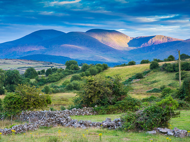 Your unforgettable adventure begins in Dublin, after which we journey to the scenic harbour village of Howth. Explore a 19th-century castle and traverse the ruins of Killevy Old Churches. Discover the Ring of Gullion, a designated Area of Outstanding Natural Beauty. Encounter a 5,000-year-old passage tomb and savour sweeping views of Dublin Bay and Wicklow. Hike with the spectacular Slieve Foye as a backdrop, and climb the highest pass in the Mountains of Mourne. Journey to Bloody Bridge, admiring castles and breathtaking views of Slieve Commedagh, the second-highest mountain in the range. Trek along the castle-studded shore of Strangford Lough and behold where the Titanic sailed from. Explore the North Down Coastal Trail and pause at Grey Fort Point, a battery used during WWI. Learn how bagpipes found their place in Northern Irish culture. Enjoy a Belfast guided tour and learn about the city’s fascinating history and architecture before saying your goodbyes and ending the trip.