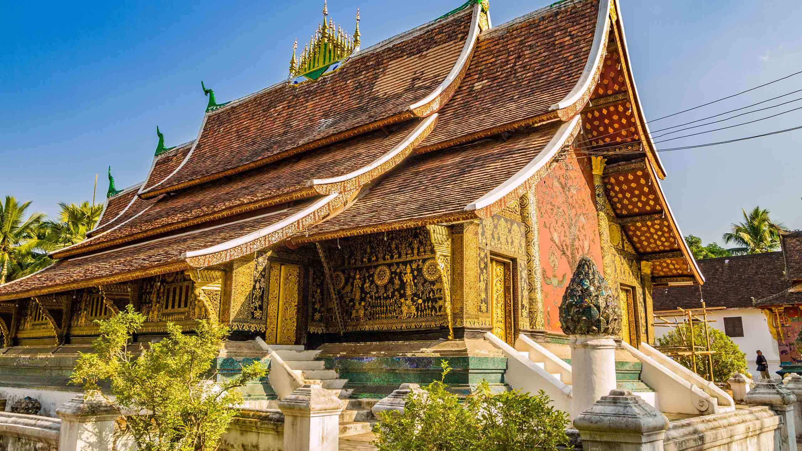 We’re dedicating today to royal history. We board the train from Vang Vieng to Luang Prabang, a dreamy little city where ancient temples meet fresh baguettes (a remnant of French colonial times). Arriving here feels like stepping into a sepia-toned postcard. It’s elegant and unhurried. They don’t call it “Laos: please don’t rush” for nothing.
