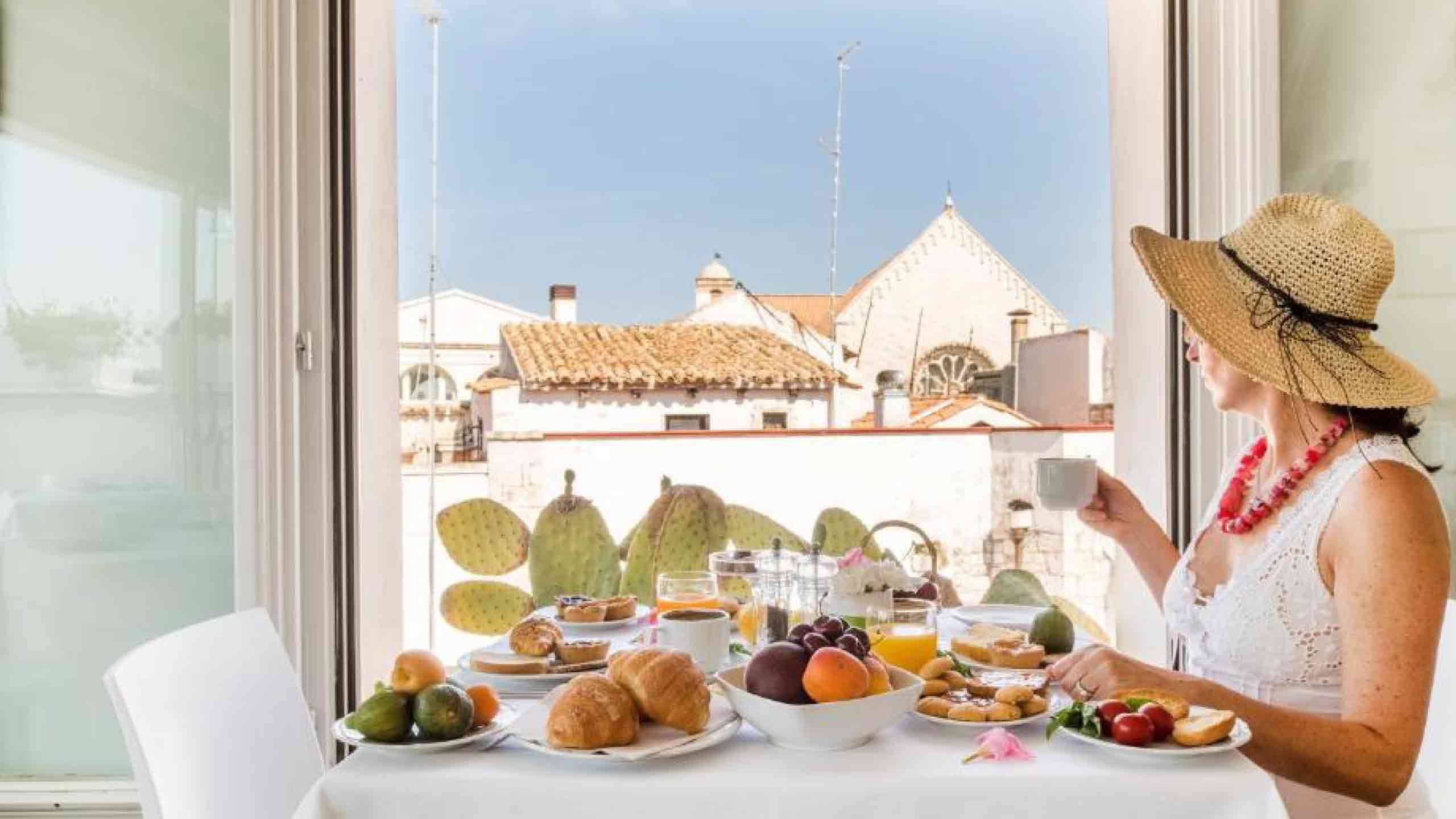 You’ll stay at Corte Altavilla , nestled within the ancient walls of a medieval Norman court in the heart of Conversano's historic centre. Ascend to the rooftop terrace, where panoramic views unfold or find sanctuary in the subterranean Roman spa, a hidden oasis of tranquillity and wellness.