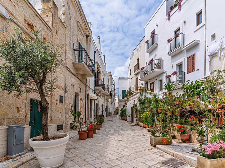 Before arriving in Ostuni, we'll stop in Monopoli, a charming coastal town known for its picturesque harbour, colourful fishing boats, and historic old town. Here, you'll have time to enjoy a second breakfast or a coffee by the water, soaking up the relaxed seaside atmosphere.