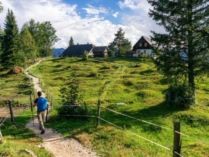 We leave Kranjska Gora, driving through the Slovenian countryside to the Kamniška Bistrica valley, where we board a cable car to the pastures of Velika Planina. The ride itself is an adventure, with vistas of the Kamnik-Savinja Alps and the valley below.