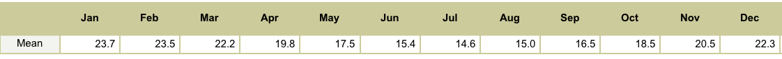 A destination for all seasons, Kangaroo Island’s climate is as dynamic as the scenery – from season to season the Island yields fresh perspectives. The Mediterranean climate produces warm summers and temperate winters. Daytime temperatures range from 25-35°C in summer to 14-18°C in winter.(Data sourced from Australian Government Bureau of Meteorology, Units = °C)