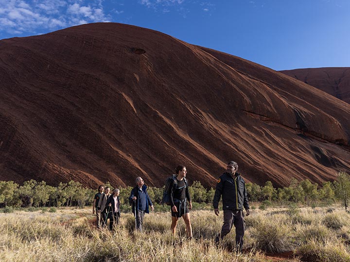 What time does the trip commence and conclude: We recommend spending the night before the walk departure in the township of Yulara at Ayers Rock Resort. This allows extra time for you to unwind, explore the area, and prepare for your adventure. If you're not sure where to stay, contact us for accommodation recommendations. On the morning of your walk, we ask that you be ready at 8:45am for guest pick-ups from Ayers Rock Resort, including Outback Hotel, Sails in the Desert, The Lost Camel Hotel, Emu Walk Apartments and Desert Gardens Hotel. Please allow a 15-min window for pick-ups.